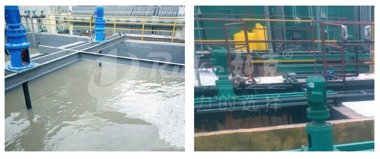 桨叶旋转后,投加药剂充分混合溶解,药剂分子与污水中有害物质迅速反应,达到去污消毒作用