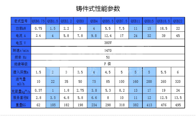 QXB离心式潜水曝气机铸铁不锈钢材质污水生化氧化池处理曝气增氧