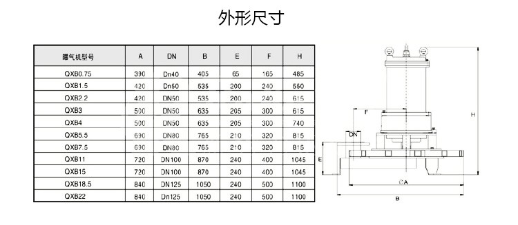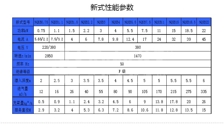 QXB型离心式潜水曝气机用于污水处理厂曝气池、曝气沉砂池,对污水污泥的混合液进行充氧及混合,以及对污水进行生化处理或养殖塘增氧。