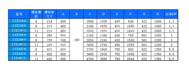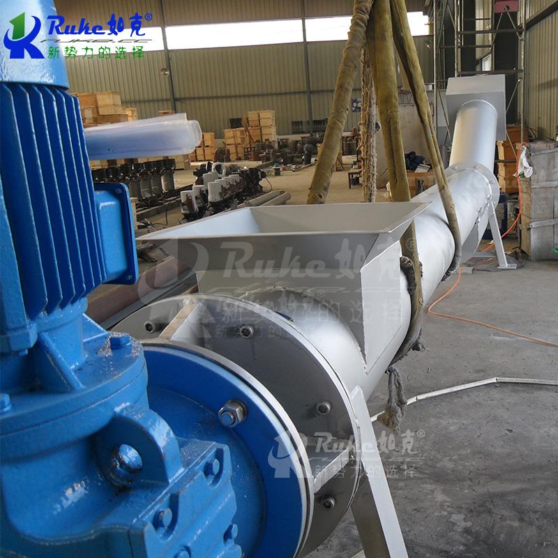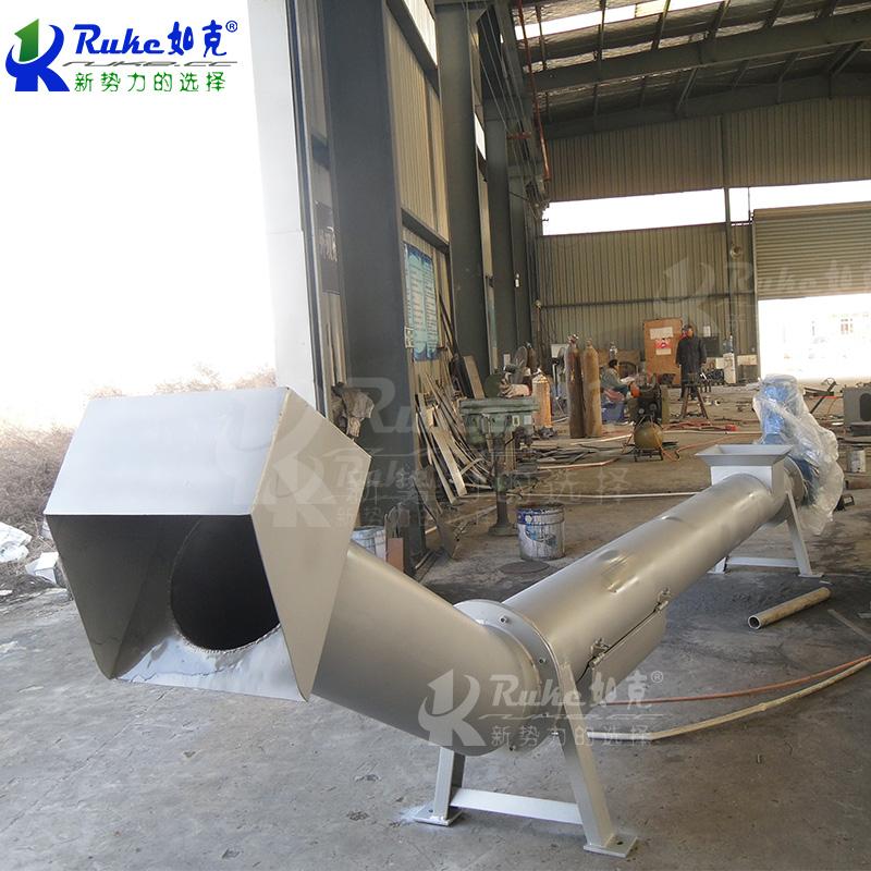 构造及工作过程: 螺旋压榨机由挤压螺旋、螺旋管、传动部件、进料斗及卸料斗等组成。污物由进料斗进入螺旋管,在挤压螺旋的作用下,压缩、脱水后输送至出渣口