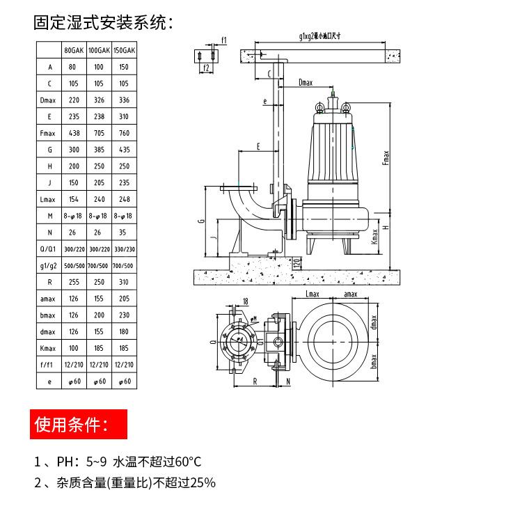 1 采用大通道抗堵塞水力部件设计,能有效地通过直径 25~70 毫米