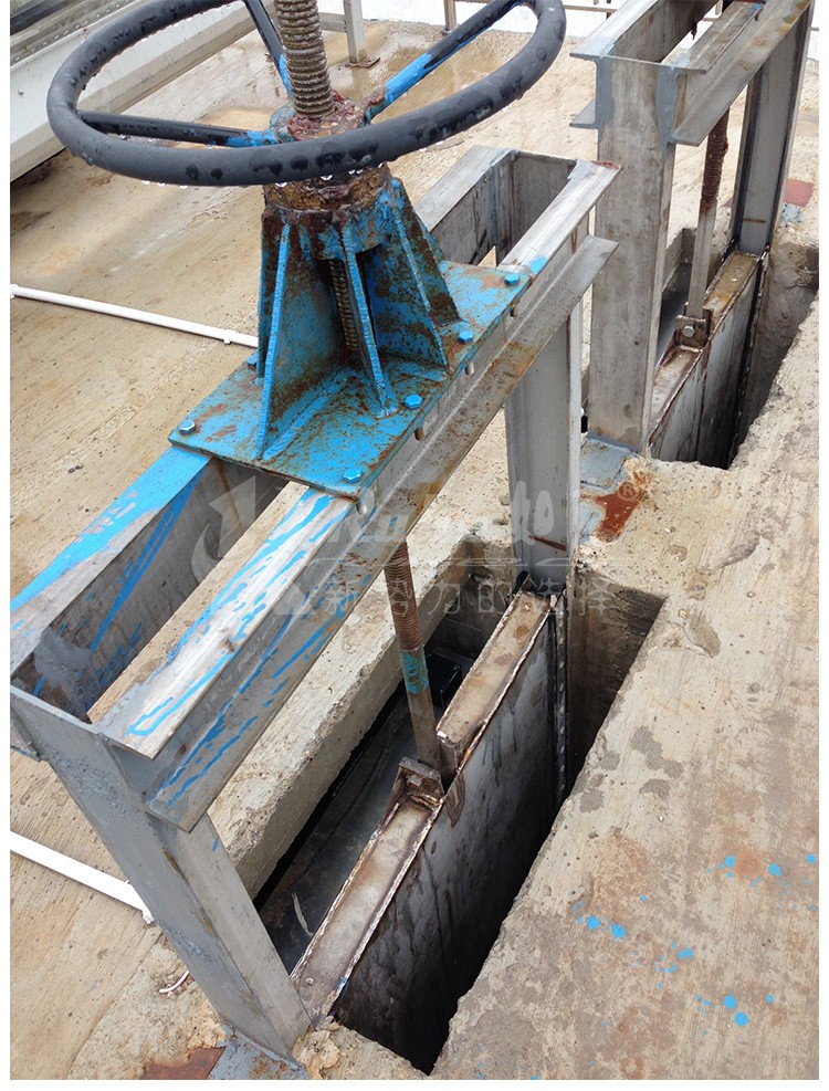 h)闸框距边壁距离≥300㎜,距池底距离≥150㎜~250㎜。
