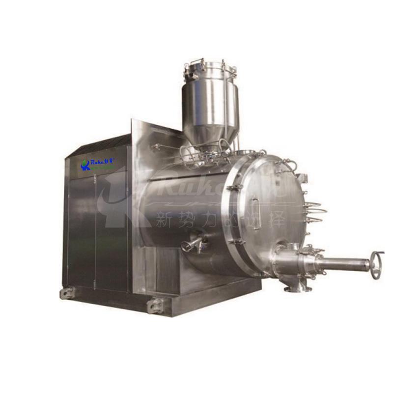 1、 装载物料的筒体设置加热夹套,夹套外部设置保温层,防止热量向环境扩散,减少热损失;筒体下部设有卸料口,上部设有两个加料口和一个排气口,加料时,应从两个加料口同时等量加入;加料量为容积的 60%~80%,不得超过容积的 80%,否则将影响蒸发气体的顺利排出,当所加载物料的粘性特强时,加料量应适当减少,以防止传动电机过载、损坏设备。